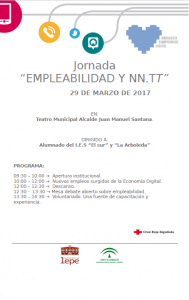 El pasado 29 de marzo se celebró en el teatro municipal de Lepe la Jornada de Empleabilidad y Nuevas Tecnologías dirigidas al alumnado de enseñanza secundaria obligatoria, bachillerato y módulos formativos del I.E.S “El Sur” y “La Arboleda”.